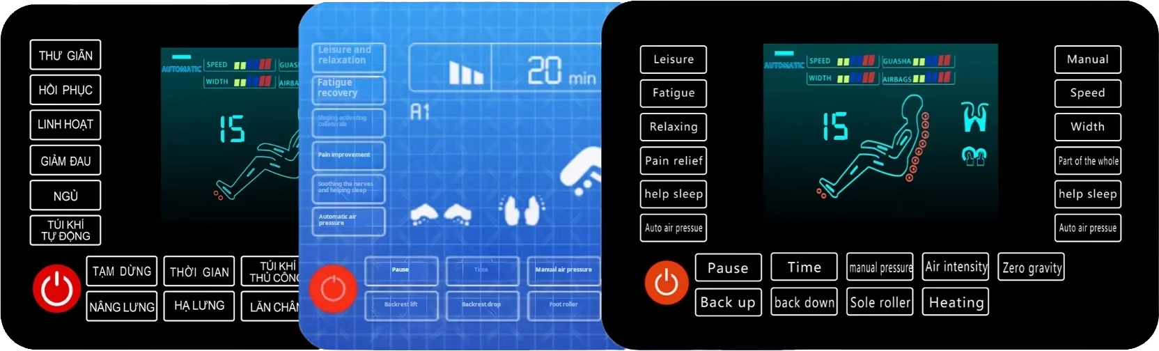| Oturum & Yatış Pozisyonu | Dinlenme, yarı uzanma ve tam uzanma pozisyonları; masaj programlarına göre otomatik ayarlama |